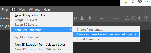 3D > Spherical Panirama > New Panorama Layer From Selected Layer(s)