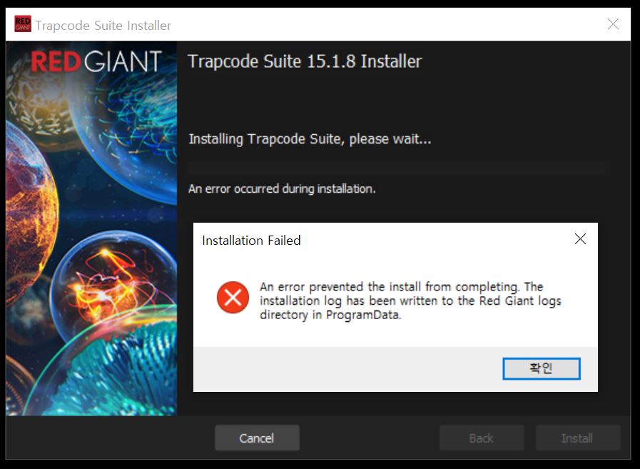 레드 자이언트 설치 오류 Red giant Trapcode Installation Failed