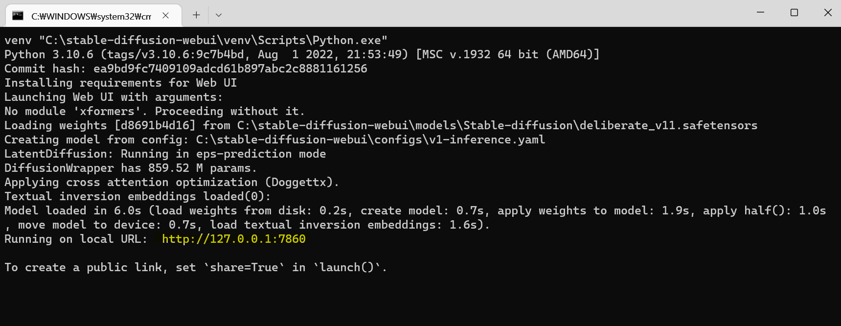 --xformers --opt-split-attention --theme=dark 추가입력