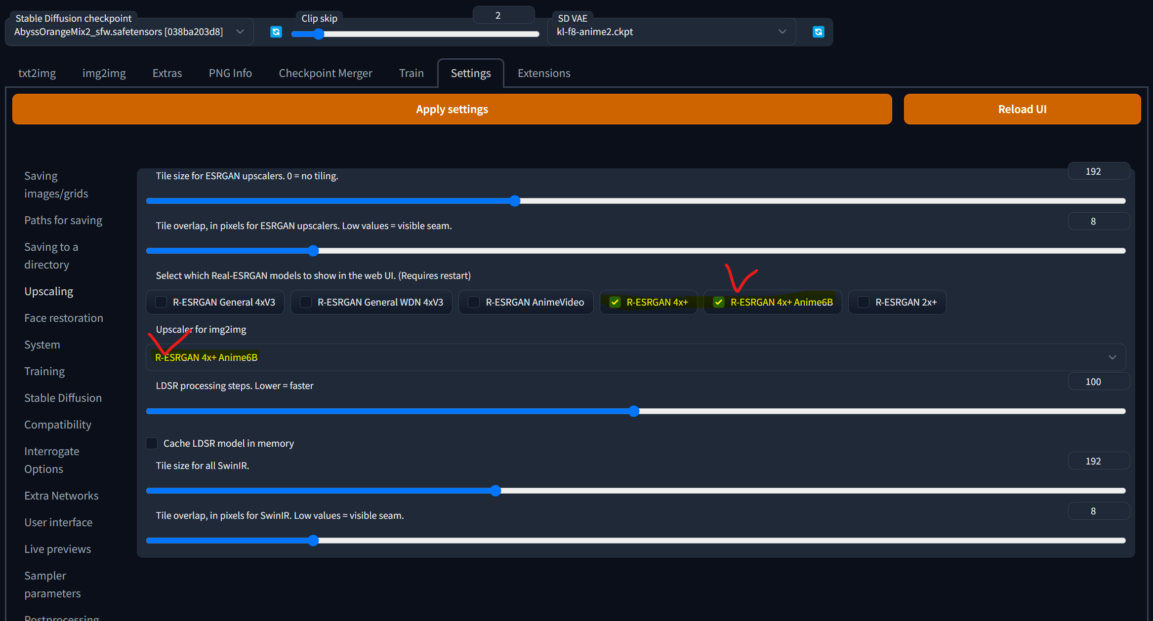- Upscaler for img2img > R-ESRGAN 4x+Anime6B 선택