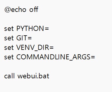 3. webui.bat 실행파일 말고, webui-user.bat 파일 변경 실행 = 램,속도향상