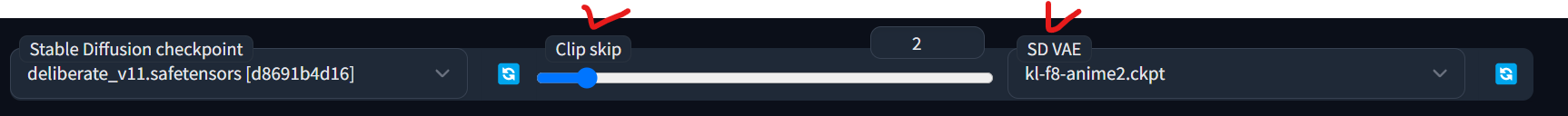 - 아래처럼 Clip skip, SD VAE 생김