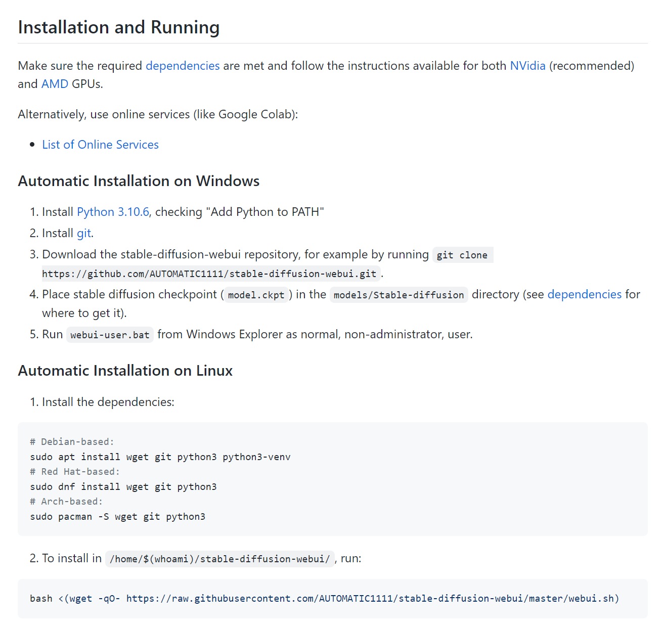 https://github.com/AUTOMATIC1111/stable-diffusion-webui/wiki/Dependencies