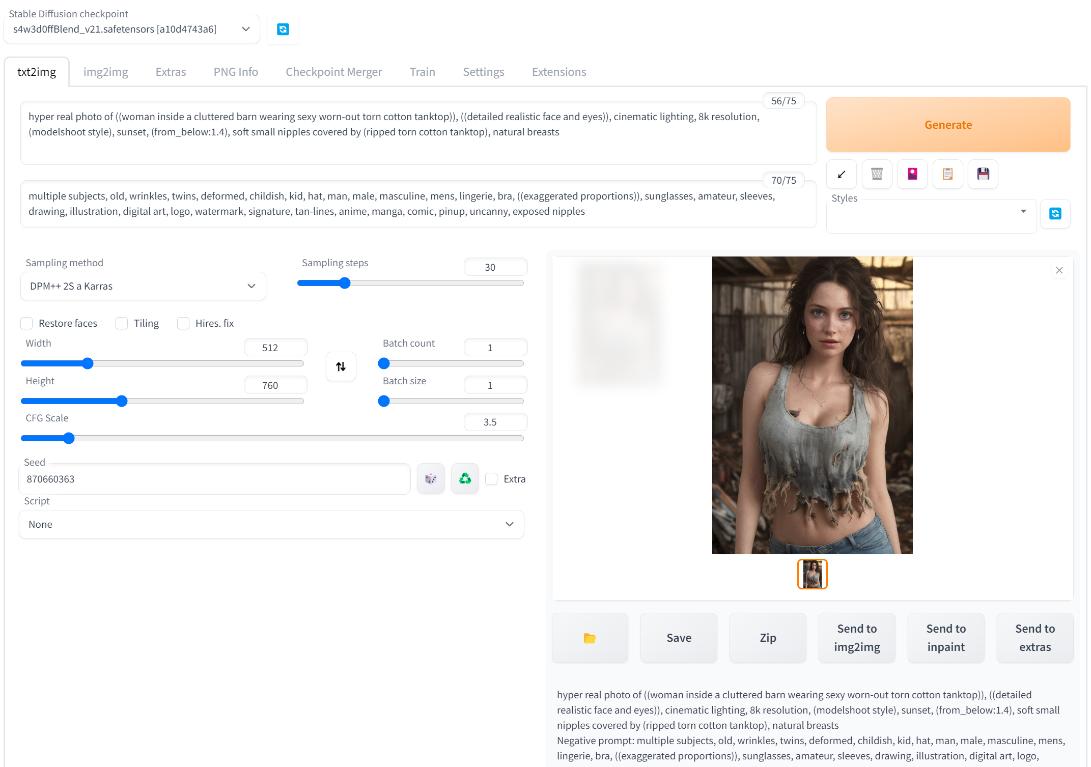 ※ 중요한 것은 모델 + 샘플링 방식 + Seed(변화 줄때는 -1),