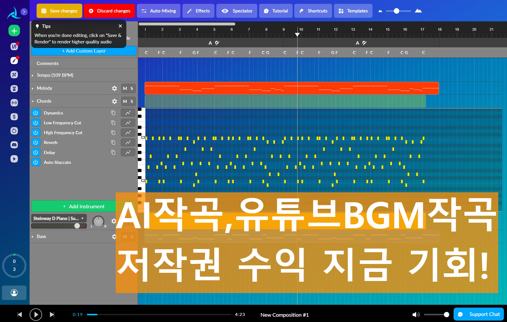 AI작곡, AIVA, 저작권등록, 작곡 수익내기, 유튜브 배경음악 작곡, BGM작곡, 장르선택, 악기선택