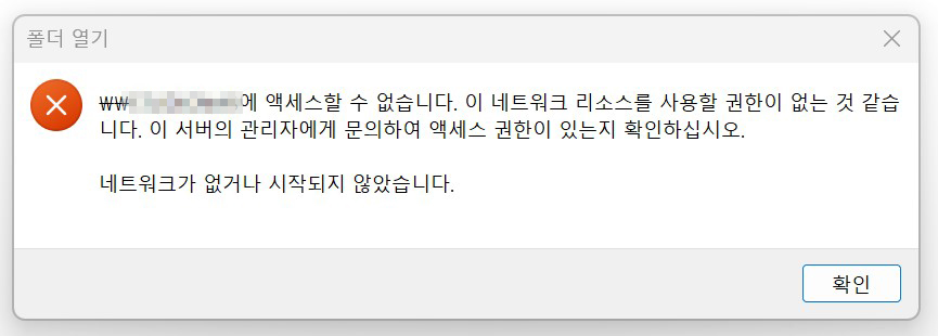 ~에 액세스할 수 없습니다. 이 네트워크 리소스를 사용할 권한이 없는 것 같습니다. 이 네트워크 리소스를 사용할 권한이 없는 것 같습니다. 이 서버의 관리자에게 문의하여 액세스 권한이 있는지 확인하십시오.